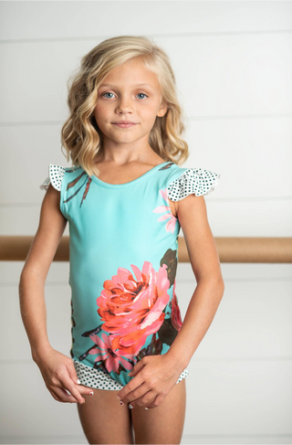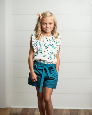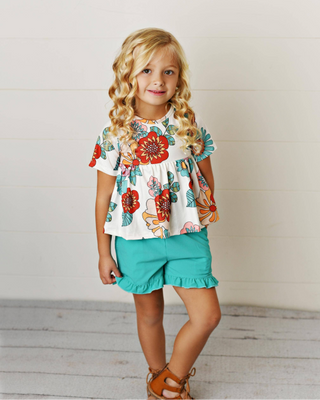 Oopsie Daisy Kids Groovy Teal Floral Ruffle Spring Pocket Short Set